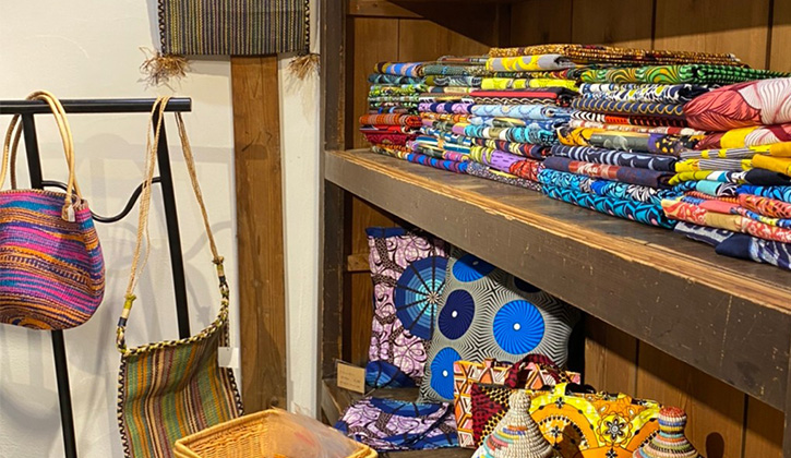 ケニアビーズやアンティークビーズのような工芸品から生活に使えるプラ食器・バスケットなど身近なものまでをマルシェなどで販売